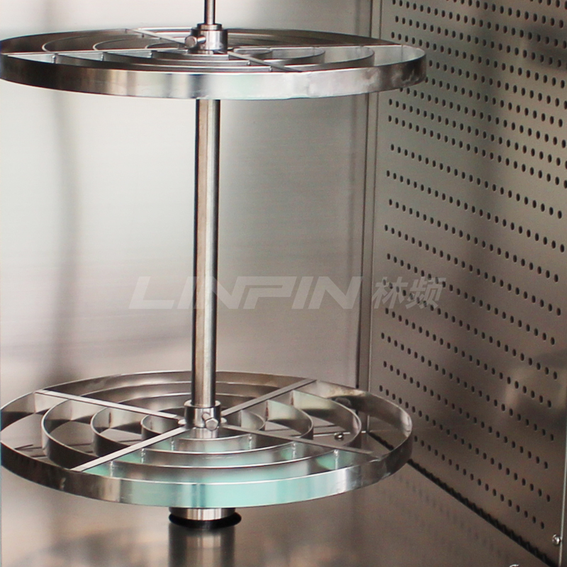 試樣轉盤:兩層不銹鋼轉架(可根據(jù)客戶要求定制隔板樣品架)